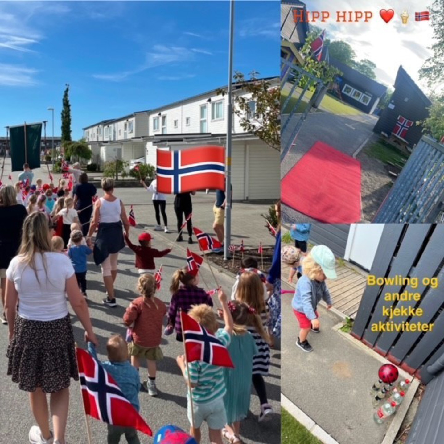 Dagen før dagen ble det 17.mai feiring med barnetog og aktiviteter i barnehagen i nydelig sommervær. Det var mange foreldre og besteforeldre som hadde mulighet å se barna med flagg og sang idag! Gratulerer med dagen!