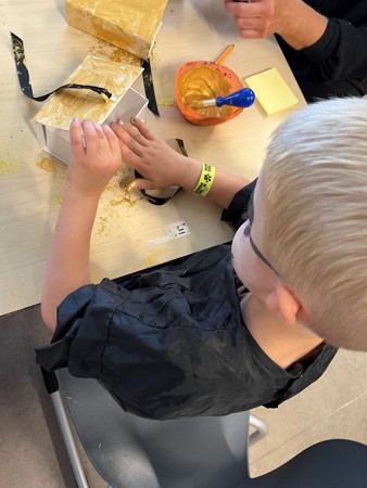 Vi lager sjørøverutstyr, gull og skattekister. Vi har hengt opp sjørøverflagg på skutene og malt oss i fjeset. Dette blir en spennende uke med mange kjekke aktiviteter.